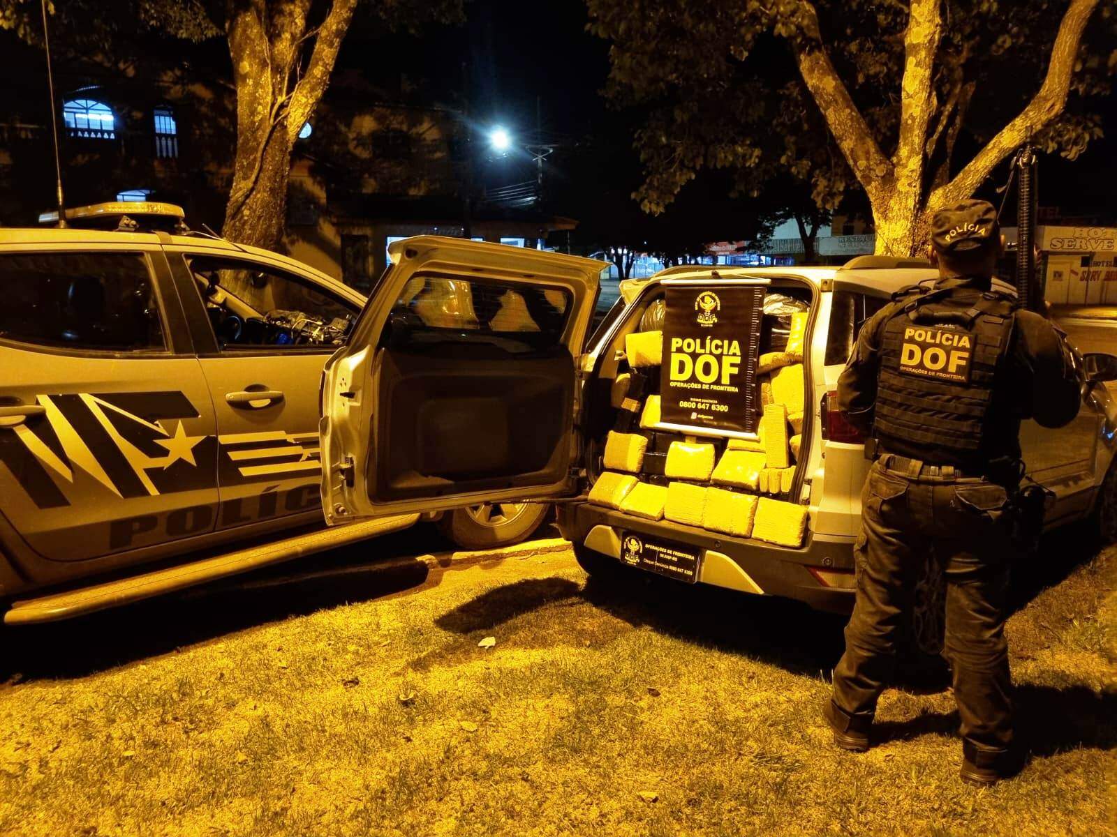 Policiais do DOF (Departamento de Operações de Fronteira) apreenderam na madrugada desta quinta-feira (21), na rodovia MS-289, 1.007 quilos de maconha transportados em uma SUV EcoSport roubada no interior de São Paulo. No veículo também foram encontrados 26,5 quilos de skunk. Roubada no dia 7 deste mês em Suzano (SP), a EcoSport era conduzida por Luiz Felipe Soares de Castro Rodrigues, 28. Os policiais faziam bloqueio na rodovia, que liga Coronel Sapucaia a Amambai, quando deram a ordem de parada ao condutor do veículo. Luiz Felipe não parou e fugiu em alta velocidade em direção ao perímetro urbano de Amambai. Próximo ao terminal rodoviário, no cruzamento da Avenida Pedro Mainvaler com Manoel Alves de Oliveira, ele perdeu o controle, subiu na calçada e foi cercado e preso. Levado para a Polícia Civil, Luiz Felipe foi autuado em flagrante por tráfico e receptação pelo fato de a EcoSport ser roubada. A polícia estimou em R$ 2,3 milhões o valor da carga de droga nos grandes centros brasileiros. Receba as principais notícias do Estado pelo Whats. Clique aqui para acessar o canal do Campo Grande News e siga nossas redes sociais .
