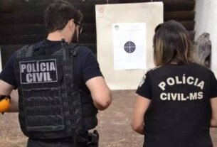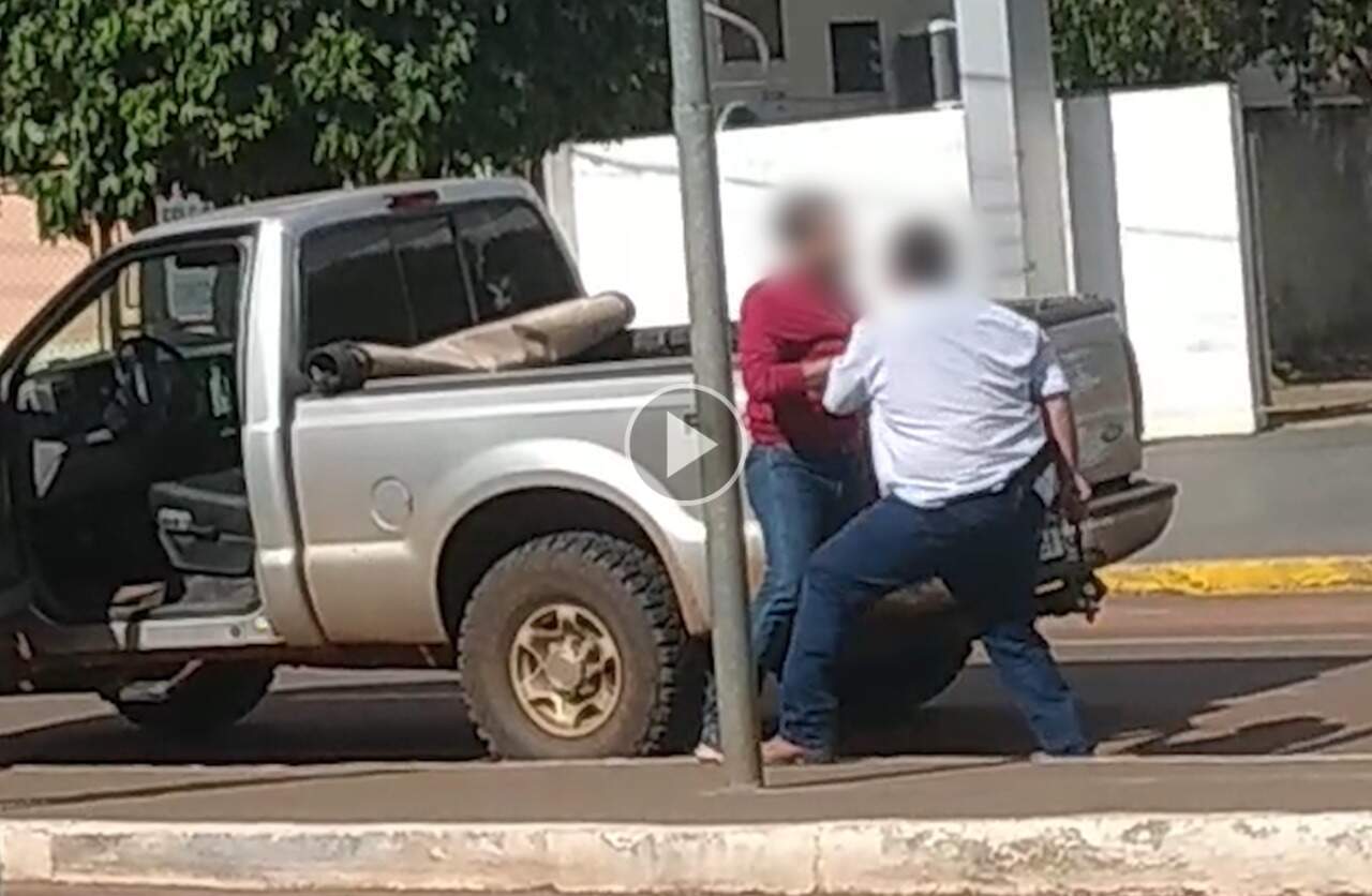 Dois homens foram presos após discussão no centro de Água Clara, a 193 quilômetros de Campo Grande. Imagens flagram quando um deles, armado com faca, avança e cerca o outro, que tenta se desvencilhar da situação. Segundo a polícia, a intenção dele era chegar na caminhonete e pegar o revólver que estava no veículo. A briga aconteceu ontem, às 15h29, na rua Benevuto Ottoni. A discussão, segundo o delegado Johanes Ribeiro Deguti, começou por motivo banal e havia desavença anterior, envolvendo um dos homens e o pai do outro. Segundo a Polícia Civil, depois que foi ameaçado com a faca, um dos homens tenta chegar até o carro para fugir, mas é perseguido. Ele chegou próximo do veículo, onde estava revólver Taurus, mas o outro foi mais rápido e pegou antes. A equipe da polícia já havia sido acionada e chegou durante a briga. Os homens foram rendidos. O dono da arma foi autuado por porte ilegal de arma de fogo, pagou fiança de um salário mínimo e foi liberado. O outro, indiciado por tentativa de homicídio e passará por audiência de custódia ainda hoje. Direto das Ruas – As imagens chegaram pelo Direto das Ruas, o canal de interação dos leitores com o Campo Grande News . Quem tiver flagrantes, sugestões, notícias, áudios, fotos e vídeos pode colaborar no WhatsApp pelo número (67) 99669-9563. Clique aqui e envie agora uma sugestão . Para que sua imagem tenha mais qualidade, orientamos que fotos e vídeos sejam feitos com o celular na posição horizontal.