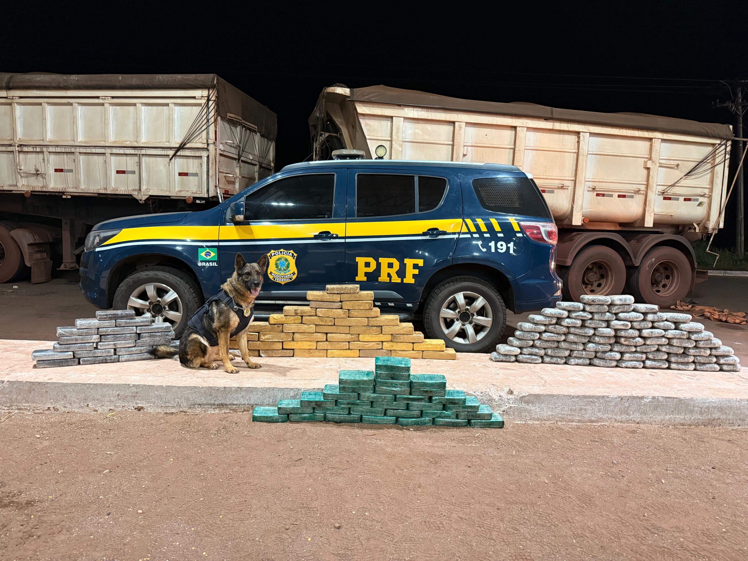 Caminhoneiro foi preso nesta quinta-feira (28) após ser flagrado transportando drogas em compartimentos ocultos de uma carreta, durante fiscalização no km 382 da BR-262, em Terenos, a 31 quilômetros de Campo Grande. Conforme registro da PRF (Polícia Rodoviária Federal), a equipe policial deu ordem de parada ao caminhão Mercedes-Benz Axor, que tracionava dois semirreboques. O veículo era conduzido por Tiego Pereira Bianco. Durante a abordagem, o motorista disse que havia carregado minério em Corumbá, mas não soube informar detalhes da rota que faria depois nem em qual posto havia parado para descansar. Ao subir no semirreboque, os policiais notaram peças não originais e iniciaram uma fiscalização mais detalhada. Com o apoio do GOC (Grupo de Operações com Cães) os cães Zorro, Amélia e Thor indicaram positivamente para drogas no veículo. Em seguida, foram encontrados 12 compartimentos ocultos na parte superior dos semirreboques. Dentro deles, estavam escondidos 20 tabletes de cocaína em pó (22,7 kg), 38 tabletes de maconha (41,2 kg), 63 pacotes de skunk (35,1 kg) e 30 tabletes de pasta base de cocaína (35,1 kg). O motorista confessou que pegou a carga em Corumbá e tinha como destino a cidade de Piracicaba (SP). Ele recebeu voz de prisão em flagrante e foi encaminhado para a Polícia Civil de Terenos. Receba as principais notícias do Estado pelo Whats. Clique aqui para acessar o canal do Campo Grande News e siga nossas redes sociais .