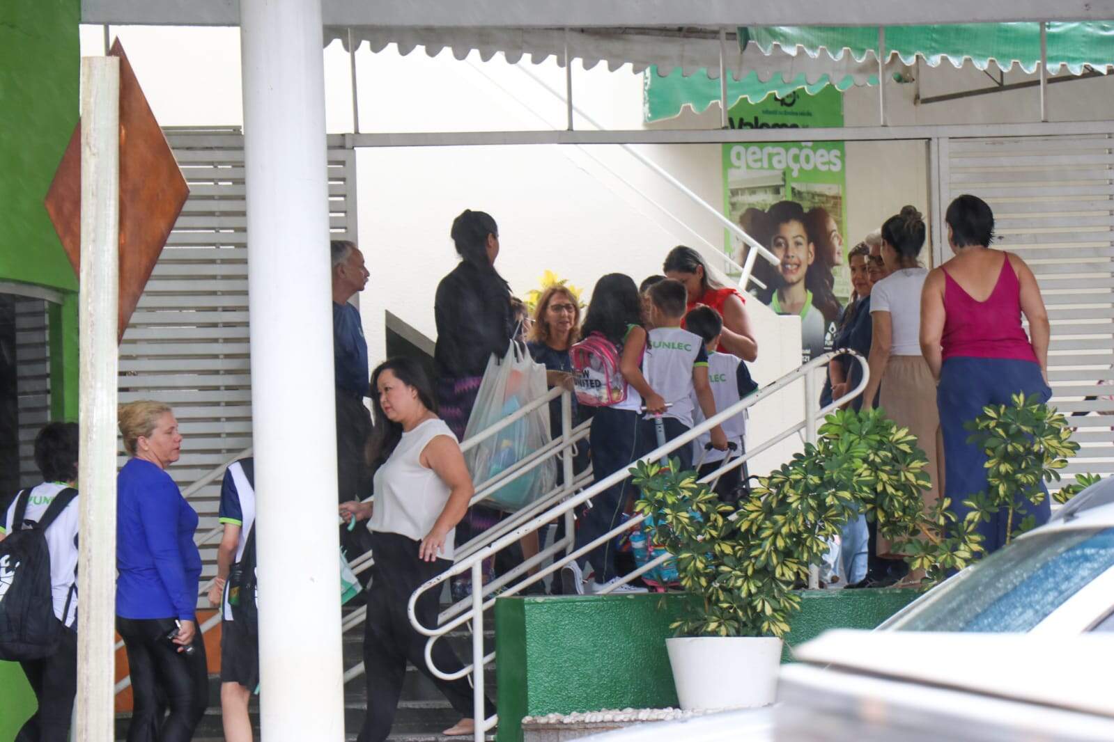 Debaixo de chuva e faltando 10 minutos para iniciar o primeiro tempo, os pais estavam chegando para deixar os filhos na escola. Nesta segunda-feira (30) começam as aulas em várias escolas da rede particular. Na escola Funlec Coronel Oswaldo Tognini, na Chácara Cachoeira, o personal trainer Flavio Gonçalves, de 44 anos, estava levando o filho, de 9 anos, que está no 5° ano. “O trânsito estava tumultuado, geralmente a gente chega em 10 minutos, mas dessa vez demorou bem mais, fila dupla e falta de educação de alguns pais”, descreveu. Flavio conta que o filho acordou 5h30 para poder tomar banho e ir para a escola. “Meu filho gosta bastante da escola e ontem ele falou: ‘pai, vou dormir cedo, porque quero acordar cedo amanhã para tomar banho e ir para a escola’. Para ele, como filho único é um ambiente que ele convive com outras crianças, cada um com a sua cultura. Então eu fico feliz quando ele retorna às aulas”, pontuou. “A rotina dele volta e até a nossa rotina de trabalho se encaixa melhor”, completou. Segundo o pai, a expectativa maior do filho é com as aulas de artes, futebol, matemática e português. Laura Vasconcelos, de 42 anos, estava deixando o filho, de 8 anos, do 4° ano; e a filha, de 14 anos, do 9° ano. Eles chegaram às 6h50. “A volta às aulas foram muito tranquilas. As expectativas é de que ocorra tudo certo. A gente espera que seja uma fase de muito aprendizado. Eles estão ansiosos. Foi uma delícia acordar eles hoje, acordaram sozinhos. A minha mais velha, de 14 anos, acordou 5h30, ela que acordou ele e a gente”, destacou. A criança está ansiosa para conhecer novos amigos e a irmã quer conhecer novos professores. O funcionário público Fernando Colman, de 59 anos, estava indo levar o neto, de 12 anos, que está no 7° ano. “Ele estava muito ansioso, acordou cedo, normalmente a gente tem uma certa dificuldade para acordar, mas hoje não. Milagre do primeiro dia, depois volta ao normal”, comentou. “Para nós é muito legal, muito gratificante acompanhar essas fases, a gente fica ansioso junto porque a gente cuida e quero ver bem. É neto, mas é como filho”, finaliza Fernando.