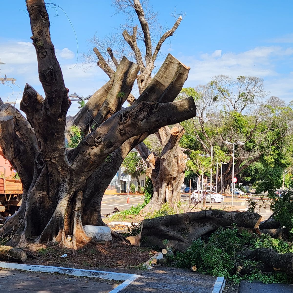 Duas figueiras centenárias da Mato Grosso são removidas após avaliação técnica