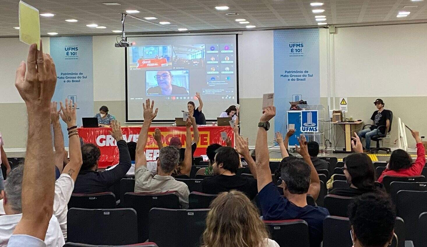 Após mais uma assembleia, realizada na tarde desta terça-feira (28), a Adufms (Associação dos Docentes da Universidade Federal) continua com a greve. A nova proposta apresentada pelo governo federal ainda não atende as reivindicações da categoria, que já agendou uma nova manifestação. Segundo Lucivaldo Alves, o presidente do Sista-MS (Sindicato dos Trabalhadores em Educação da UFMS e IFMS), o que foi sugerido agora custa aproximadamente R$ 3,5 bilhões ao governo. Porém, o que atende os trabalhadores pode chegar a um reajuste total de R$ 9 bilhões. “A tabela apresentada, com variação de reajuste para os próximos dois anos, fica entre 19 e 28%. A nossa proposta inicial de reposição salarial está em 34%”, explica Lucivaldo. Ele termina dizendo que o próximo ato dos manifestantes está marcado para segunda-feira (3), às 14h, na Praça do Rádio Clube. Conforme noticiado, 68% dos servidores públicos da UFMS estão paralisados desde o dia 1º de maio. São 1.496 professores efetivos e 1.762 técnicos administrativos aqui no Estado. Atualmente, a instituição mantém 10 campi em Mato Grosso do Sul, 8 votaram favoráveis à paralisação. Histórico – Desde 2015 a UFMS “não para”. Naquele ano, a paralisação começou em 15 de junho e seguiu até 14 de outubro, com 4 meses sem aulas. A anterior, em 2012, durou 90 dias. Desta vez, os professores reivindicam reajuste salarial de 22,71%, em três parcelas anuais de 7,06% cada, começando em 2024. Já os técnico-administrativos cobram 34%, também dividido até 2026 e já estão parados desde março. A União apresentou contraproposta de reajuste de 9% em janeiro de 2025 e 3,5% em maio de 2026. Mas a categoria não abre mão de percentual já em 2024, porque também contemplaria os aposentados. Outro pedido que emperra as negociações é a equiparação do auxílio-alimentação aos valores pagos ao Legislativo e Judiciário federais. “Enquanto os professores ganharam R$ 1 mil com aumento proposto agora pelo governo, os dois poderes já pagam cerca de R$ 4 mil. A diferença é discrepante”, reforçou a presidente da Adufms, Mariuza Guimarães.