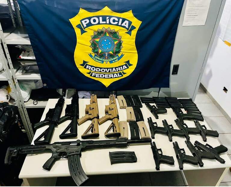 Mulher, que não teve o nome divulgado, foi presa ontem, em flagrante com arsenal camuflado no carro em que viajava, com o filho de 4 anos, na BR-262, em Bataguassu, a 313 quilômetros de Campo Grande. O armamento seria levado para o Rio de Janeiro. A prisão em flagrante foi feita por equipe da PRF (Polícia Rodoviária Federal), durante fiscalização de rotina. Durante a verificação dos itens obrigatórios e das condições de segurança do veículo, foi notado que a carenagem interna do porta-malas estava solta. Quando os policiais puxaram a carenagem, viram objeto envolto em uma meia preta, enrolado com fita crepe. A equipe constatou que se tratava de dois carregadores de fuzil. A equipe continuou as buscas e encontrou o resto das armas. No total, a mulher levava 4 fuzis, 10 pistolas, 1 espingarda e diversos carregadores de munição. A ocorrência foi encaminhada à Polícia Federal em Três Lagoas (MS). A criança, que foi identificada pela documentação como filho da autora, ficou sob a guarda do Conselho Tutelar. Receba as principais notícias do Estado pelo Whats. Clique aqui para acessar o canal do Campo Grande News e siga nossas redes sociais .