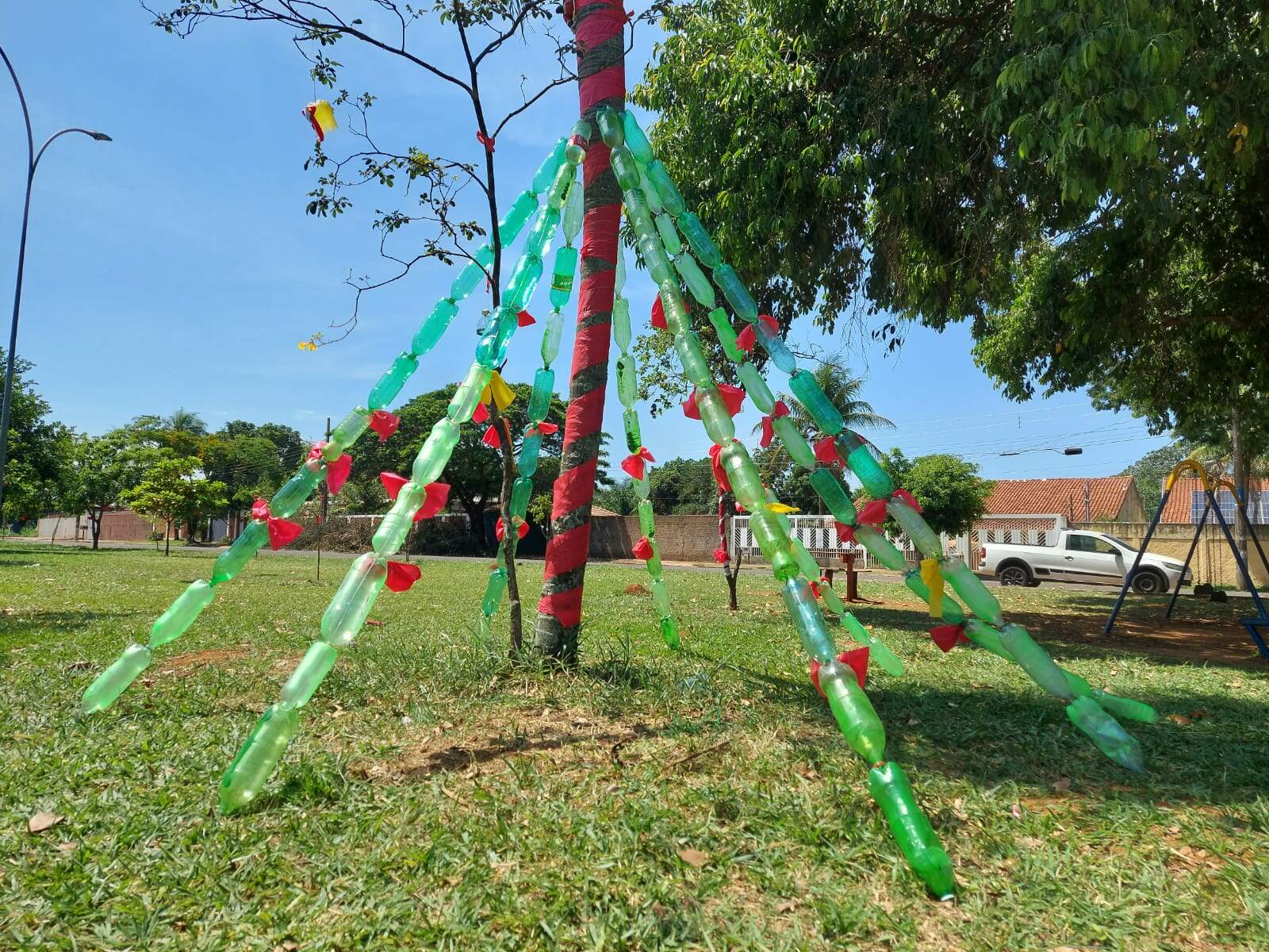 Mais do que decorar as próprias casas, moradoras do Nova Campo Grande decidiram se unir para garantir que o espírito natalino chegasse até a praça do bairro. Com ajuda de comerciantes e vizinhos, o grupo montou uma árvore de garrafa PET e espalhou decorações feitas artesanalmente pelo espaço. Cansadas de sentir que o bairro acaba ficando isolado do restante da cidade, as moradoras criaram um grupo para movimentar ações na região. Com esse objetivo, até o Natal entrou na lista de coisas a serem feitas. “Nós decidimos de última hora, faz mais ou menos um mês, mas deu certo. Uma foi reunindo garrafas, a outra foi atrás de apoio e outra começou a fazer os artesanatos”, conta Fábia Britez, de 47 anos. Moradora do Nova Campo Grande há mais de 20 anos, ela explica que a ideia é que o bairro se torne acolhedor cada vez mais. “A praça existe desde a fundação do bairro, mas aos poucos é que estamos conseguindo melhorar ela. Desde os banquinhos até as decorações, tudo é movimento de moradores”. Por ser um movimento de moradores voluntários, a arrecadação de dinheiro garantiu a compra dos materiais e de algumas luzes decorativas. E, pegando até garrafas que estavam espalhadas pelas ruas, a decoração foi surgindo. Mesmo sendo simples, as faixas, laços e outros adereços já são motivo de orgulho para quem sempre sonhou com a melhora do bairro. Massoterapeuta, Lygia Soares detalha que há cerca de 45 anos chegou ao Nova Campo Grande, saiu da região e acabou voltando por gostar da área. “A gente sonha que os moradores se unam mesmo para a gente conseguir mais coisas. Nós estamos tentando fazer um pouco de tudo e até feira vamos trazer para cá. O Natal faz parte e até festa junina do ano que vem já estamos planejando”, conta Lygia. Em conjunto com as vizinhas, Nilce Maria Silva foi a responsável por criar a maior parte da decoração. Aposentada, ela trabalha com artesanatos e decidiu usar seu tempo para contribuir. Contando que se unindo é possível fazer muita coisa, Nilce explica que ver o bairro decorado faz com que os moradores se sintam melhores e com mais vontade de também ajudar. Acompanhe o Lado B no Instagram @ladobcgoficial , Facebook e Twitter . Tem pauta para sugerir? Mande nas redes sociais ou no Direto das Ruas através do WhatsApp (67) 99669-9563 (chame aqui) .